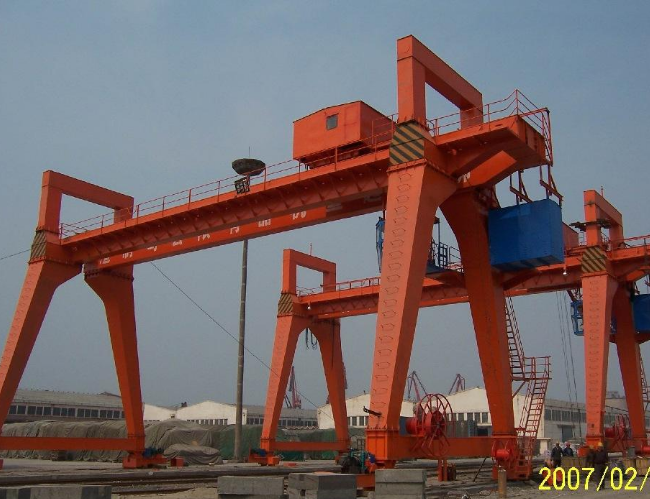 雙梁門式起重機型號其型號有:MG、ME、MZ、MC、MP、MS,根據(jù)產(chǎn)品外形可以分為U型雙梁龍門式起重機、A型雙梁門式起重機以及包箱雙梁門式起重機、花架雙梁門式起重機。本機適用于大跨度,裝卸作業(yè)頻繁的鐵路貨場、港口、露天倉庫、集裝箱中轉(zhuǎn)站進行一般性貨物的裝卸及起重運輸工作(同樣適用于車間內(nèi)安裝使用)。整機有雙主梁橋架、大車運行結(jié)構(gòu)、小車、電氣設(shè)備等部分組成。